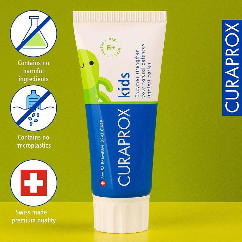 Wanneer tandpasta een verfrissende muntsmaak heeft, wordt poetsen een stuk aangenamer. De fluoride in de tandpasta biedt melktanden een betrouwbare, langdurige bescherming tegen zuur voedsel en tandbederf. Met een fluoridegehalte van 1450 ppm is deze tandpasta geschikt voor de iets oudere kinderen (vanaf zes jaar).