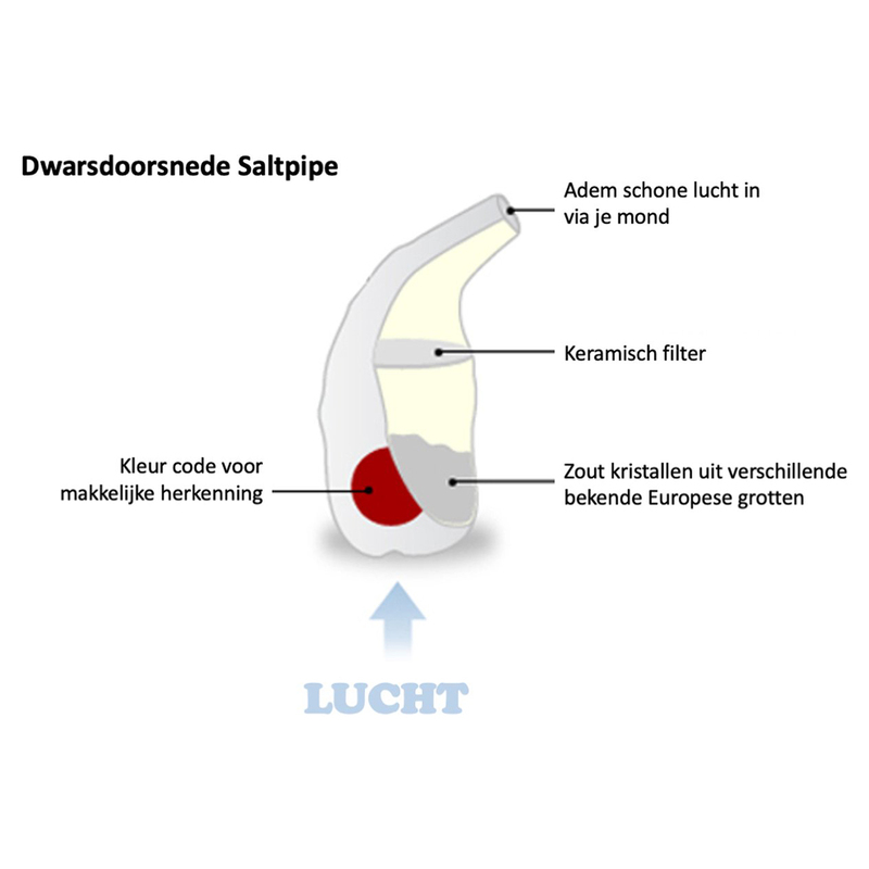 De Saltpipe Mini simuleert, net als de originele Saltpipe, het gezonde microklimaat van een zoutgrot (halotherapie). Door rustig via de porseleinen inhalator te ademen, worden microscopisch kleine deeltjes van de Haliet zoutkristallen door uw luchtwegen verspreid. Dit proces ondersteunt op een zachte en natuurlijke wijze het losmaken van slijm, het verminderen van ontstekingen en het kalmeren van de luchtwegen.