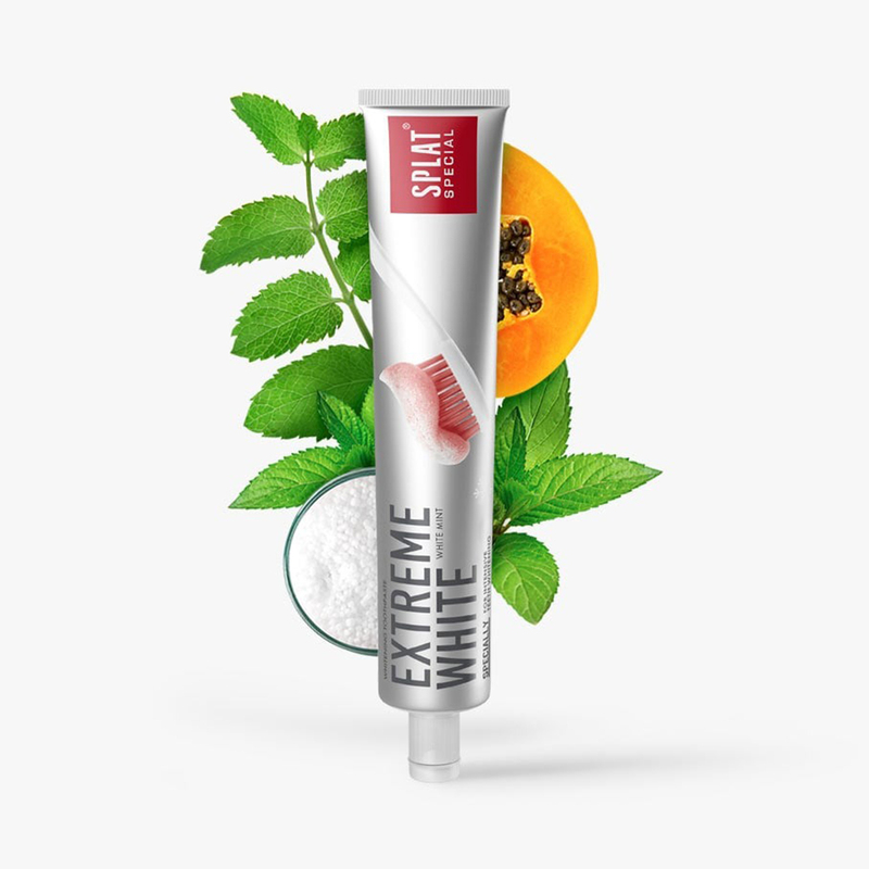 De innovatieve Extreme White tandpasta bevat natuurlijke gisten voor het intens bleken van uw tanden. De natuurlijke enzymen in Extreme White bleken intensief en breken de dunne film op uw tanden zachtjes af. Polijstende ronde deeltjes en unieke microkorrels van de Carbamide peroxide* maken uw tanden in vier weken twee tinten lichter. Fluoride-ionen beschermen uw tanden tegen cariës (tandbederf). Om gevoelige tanden te voorkomen adviseren we om Extreme White af te wisselen met tandpasta’s die het tandglazuur versterken, bijvoorbeeld Biocalcium of Medical Herbs.